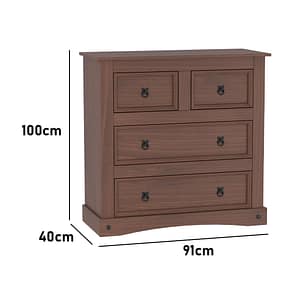 COMODA CAJONERA MADERA LINEA MEXICANA 4 CAJONES