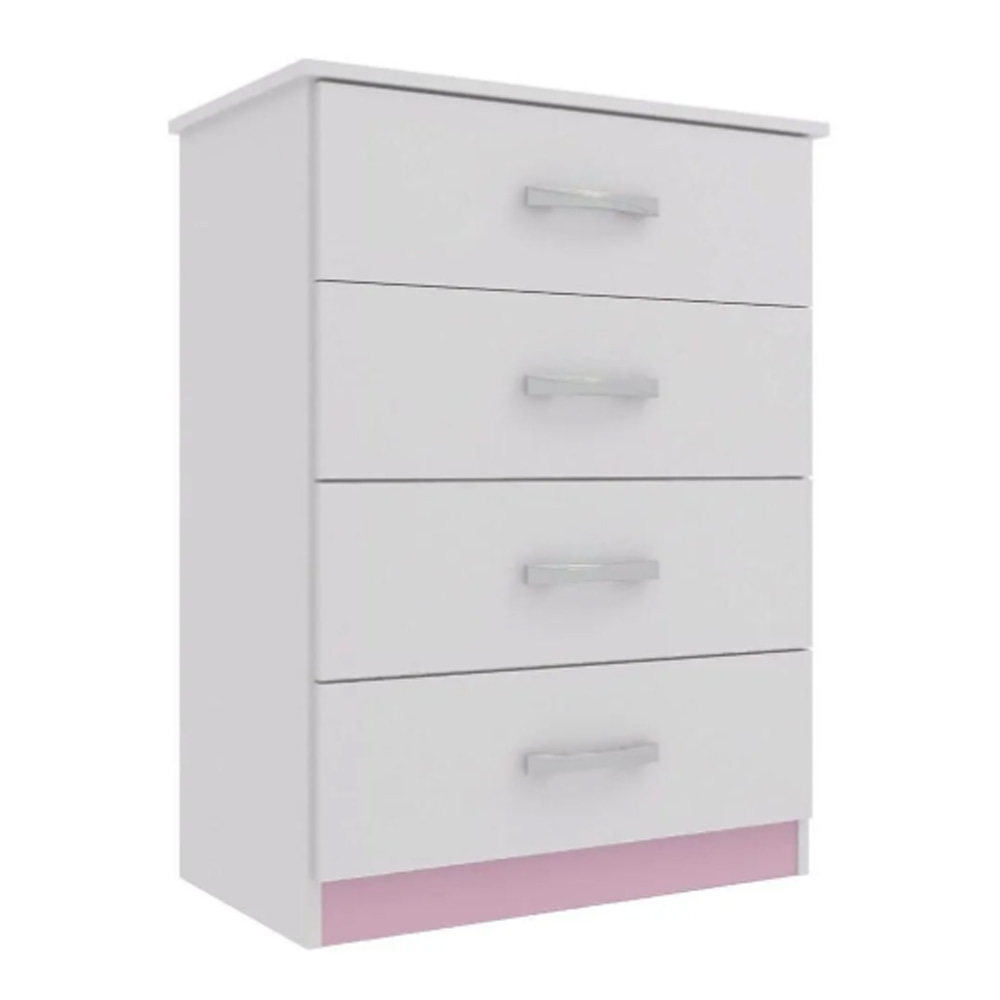 Comoda Cajonera Dormitorio Infantil 4 Cajones Blanca/rosada