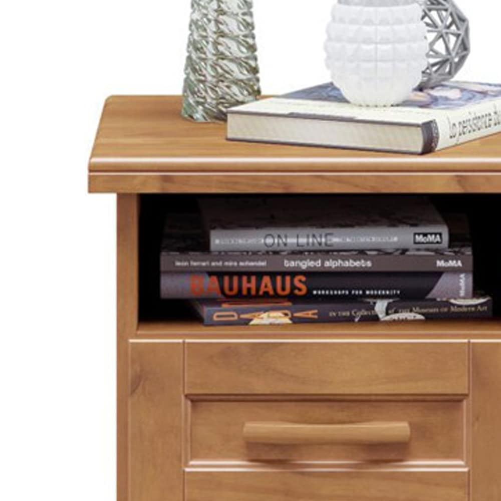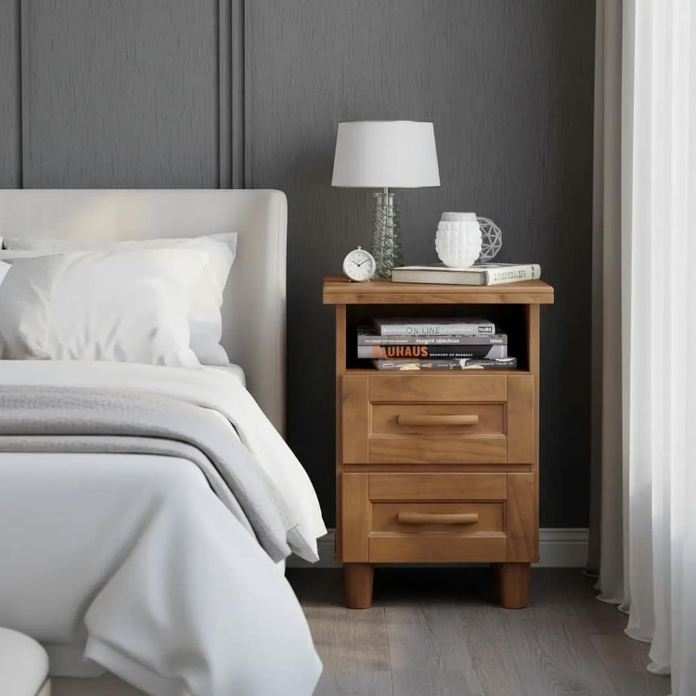 Mesa De Luz 2 Cajones 1 Estante Con Patas 100% Madera