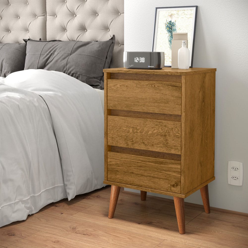 Mesa de Luz Alta Estilo Retro 3 Cajones.